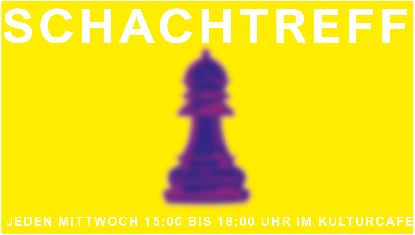 Schach im freien Spiel jeden Mittwoch (jetzt auch mit Freestyle und Crazyhouse) von 15-18 Uhr im Kulturcafe (außerhalb der Schulferien)