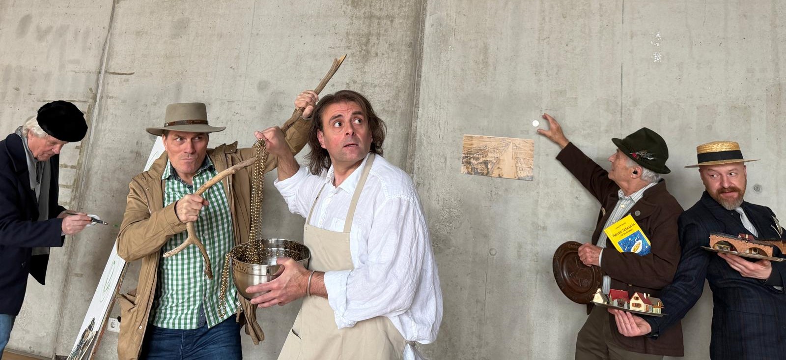 Es ist eine Geschichte mit in München Neu-Angekommenen und Münchner Urgesteinen als Musiktheater mit szenischer (und kulinarischer) Einbeziehung des Publikums, Autoren-Lesung aus „Heißer Schmarrn für die Ewigkeit“, mit Fragmenten aus „Die Göttliche Komödie“.