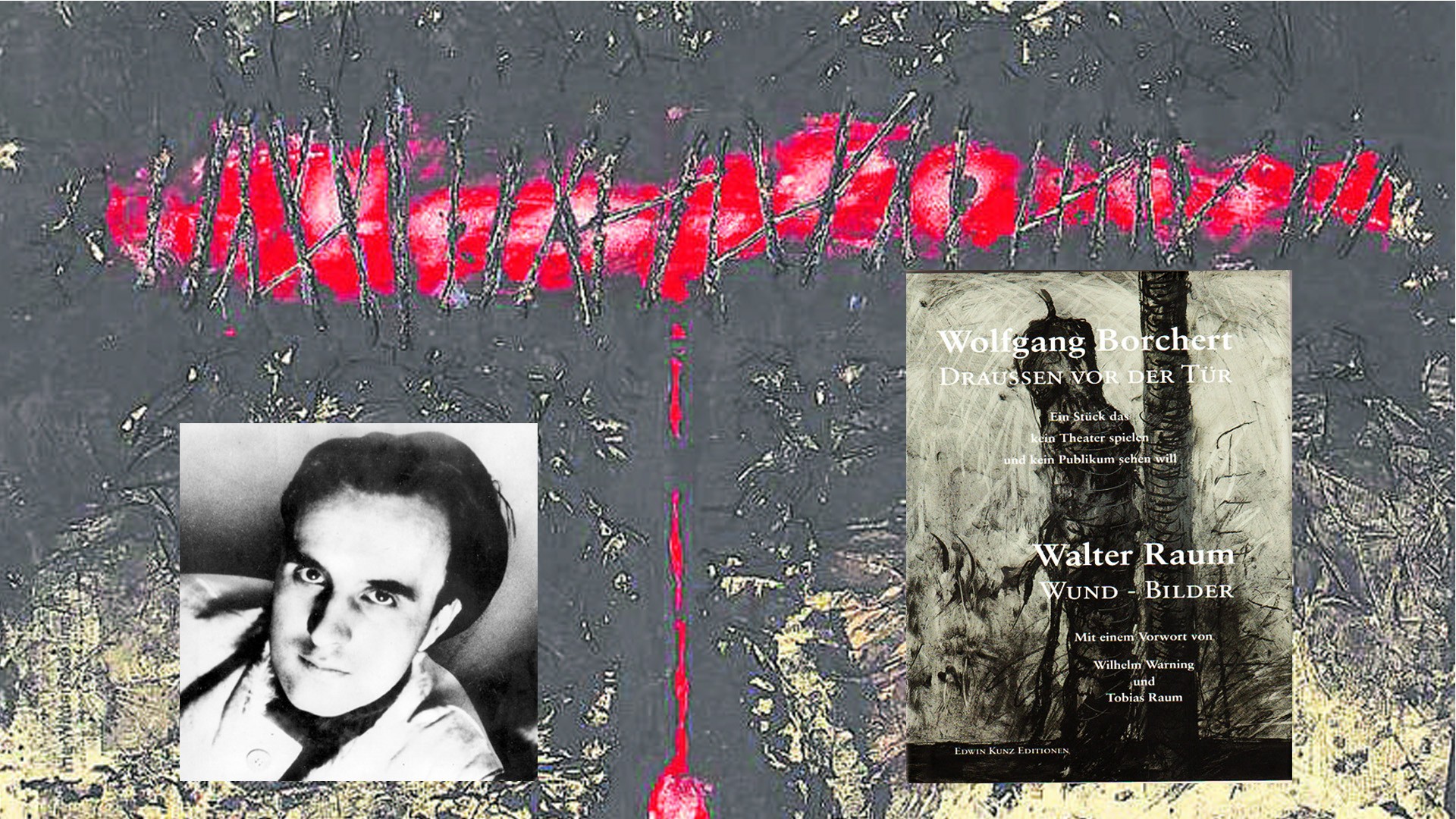 Der musikalische und visuelle Raum wird gestaltet von der Pianistin Masako Ohta und den ‚Wund-Bildern‘ von Walter Raum, einem Künstler der Nachkriegsavantgarde, der darin seine eigenen Kriegstraumata verarbeitete.